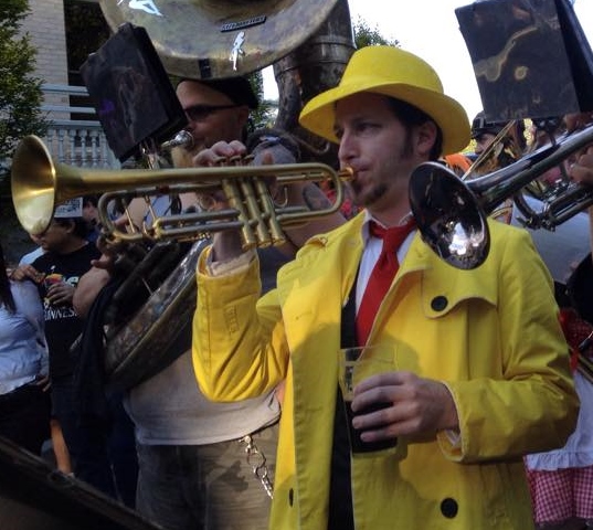 ![]() | Brooke and her alto sax joined the band in 2022, a decade and change after her high school senior marching band bio confidently declared she looked forward to joining *indoor* ensembles in future. By day, Brooke is an epidemiologist working mainly in the Global South and a proud pit bull mama. |
